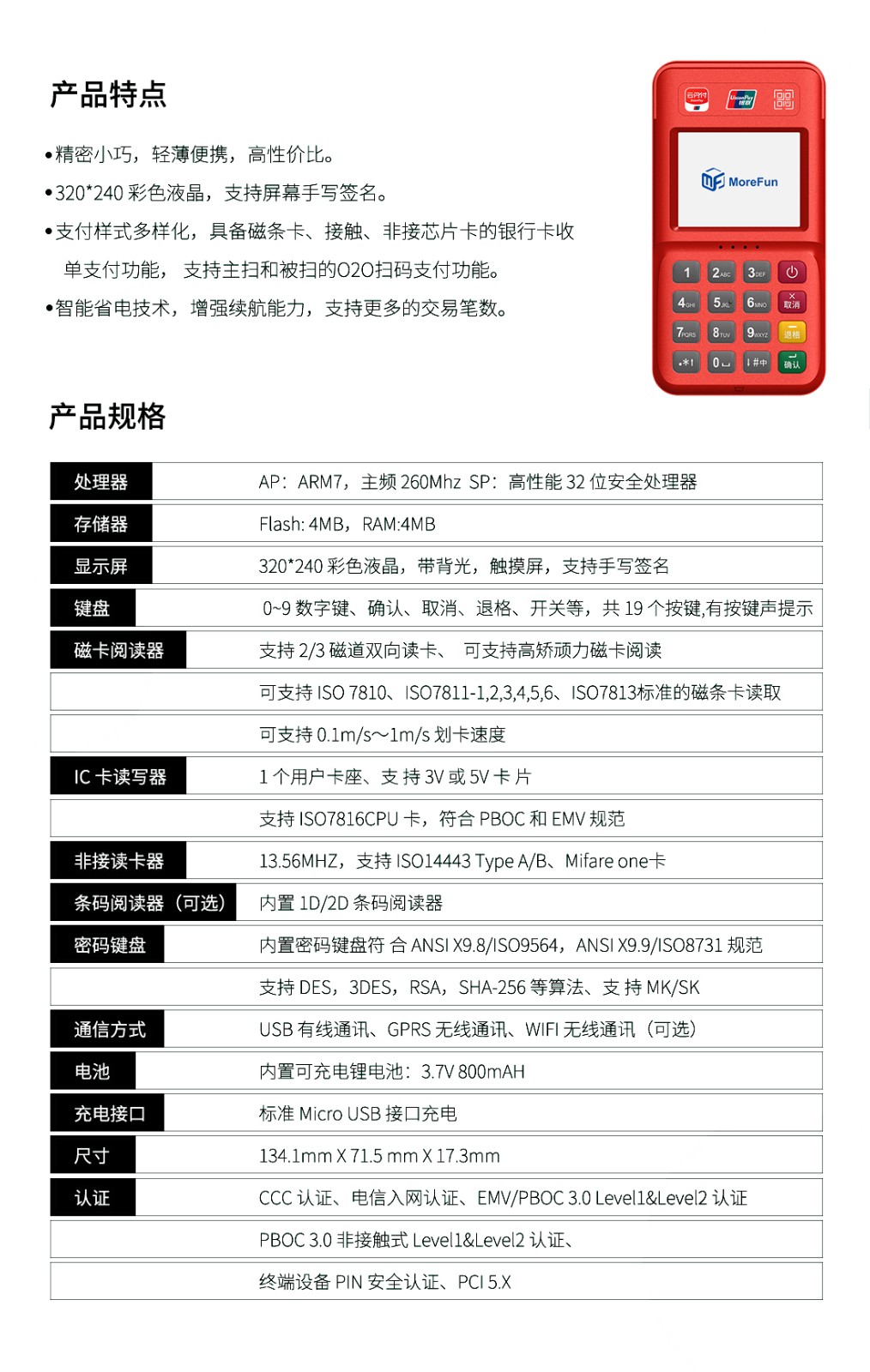首页>>北京产品中心>>北京手持无线POS 北京电银支付-4G+扫码枪 高配版 * 性能优越:32位高性能ARM11安全CPU;整机通过业内更先进的PCI PED4.X 安全认证及国内受理终端PIN输入设备安全评估检测认证,多项措施保障金融交易的安全;* 时尚外观:外形小巧携带方便,高抗跌落性能、宽工作温度、防水防尘设计、外壳坚固耐刮、户外携带式作业更加耐久可靠。* 通讯备份:支持2G-3G扩展;* 超长续航:3.7V-800毫安稳定续航能力,智能电池管理保证持续工作18小时,待机72小时。 标准配置 返 回